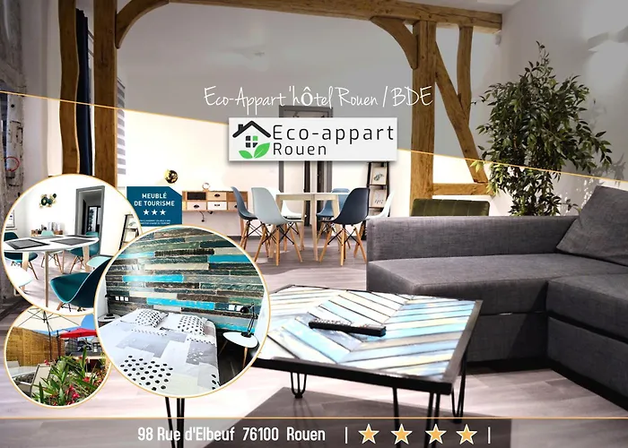 Eco-Appart'Hotel Rouen -- Bde is located 2.5 km from Parc Grammont and a 7-minute walk from Les Jardins du Sculpteur Jean-Marc de Pas. This 1-bedroom apartment features Wi-Fi and a free private car park on site.